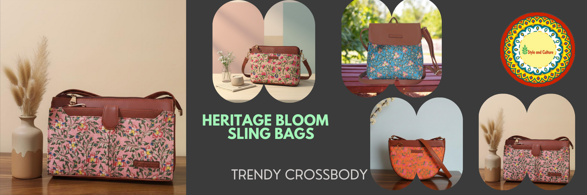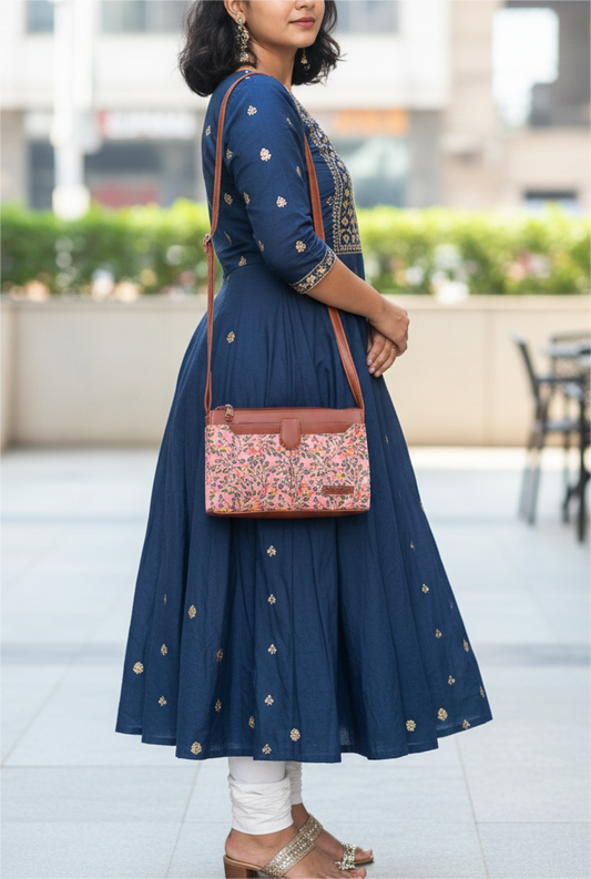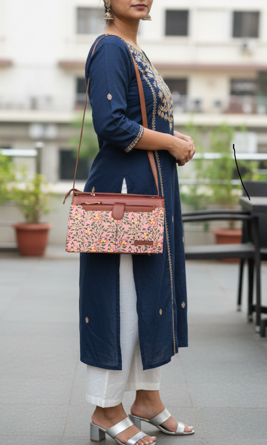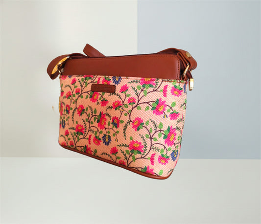 Style and Culture Handcrafted Floral design Vegan Sling Bag