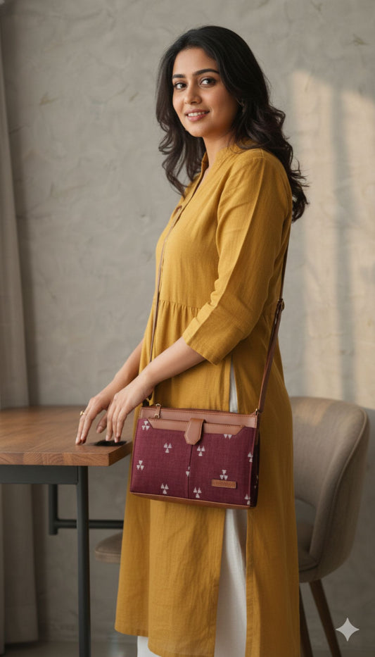 Style and Culture Handcrafted Maroon Ikat weave Vegan Sling Bag