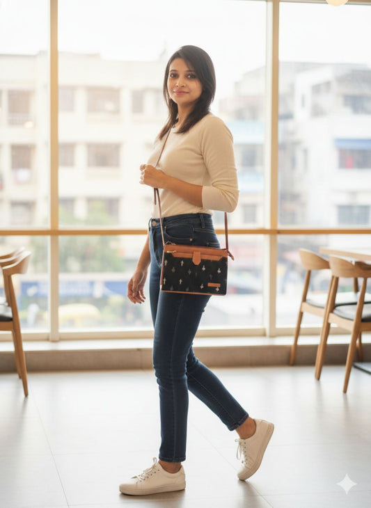 Style and Culture Handcrafted Black Minimal Ikat Vegan Sling Bag