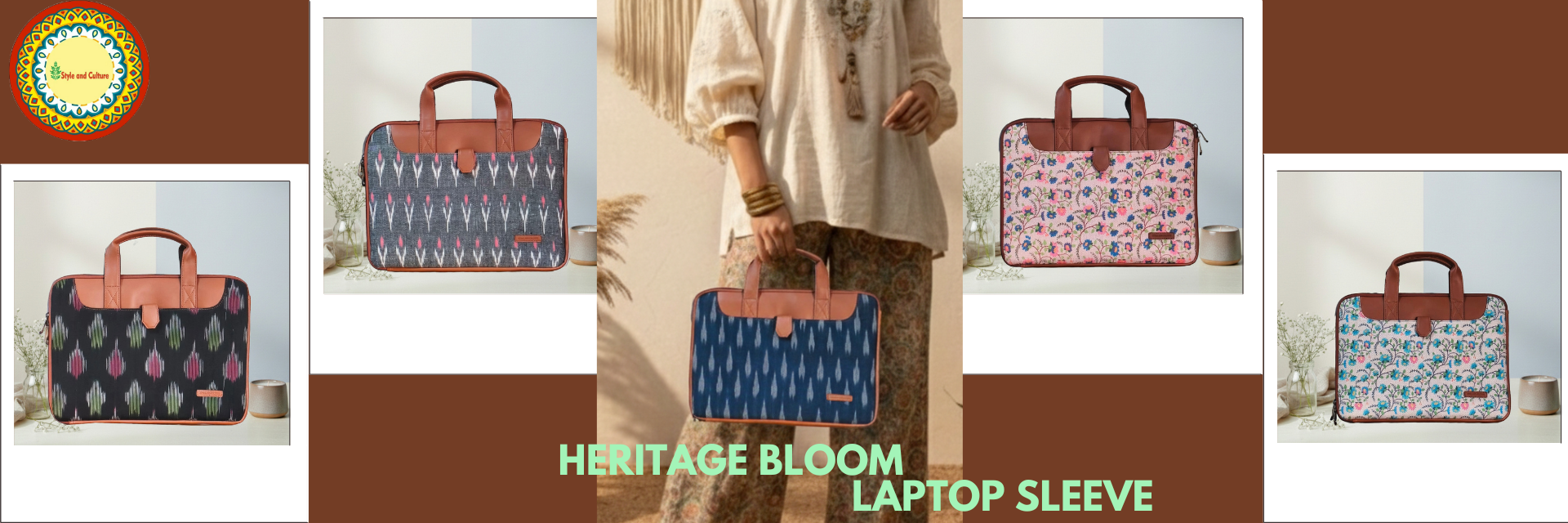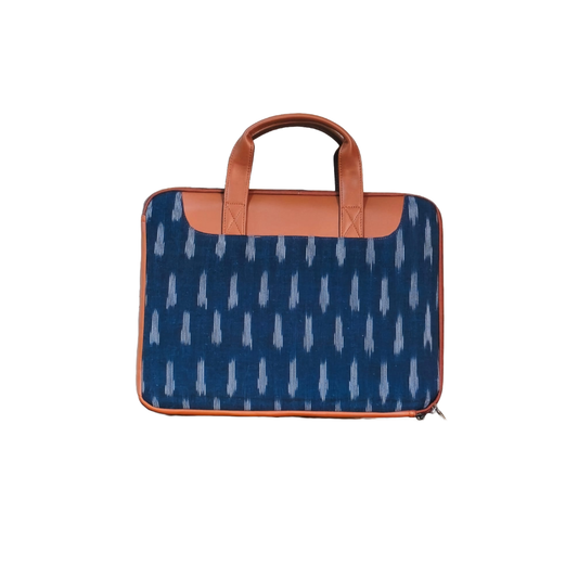 Handcrafted Ikkat Laptop Sleeve with Vegan Leather Handle L Zipper Laptop Sleeve 15.6 inch