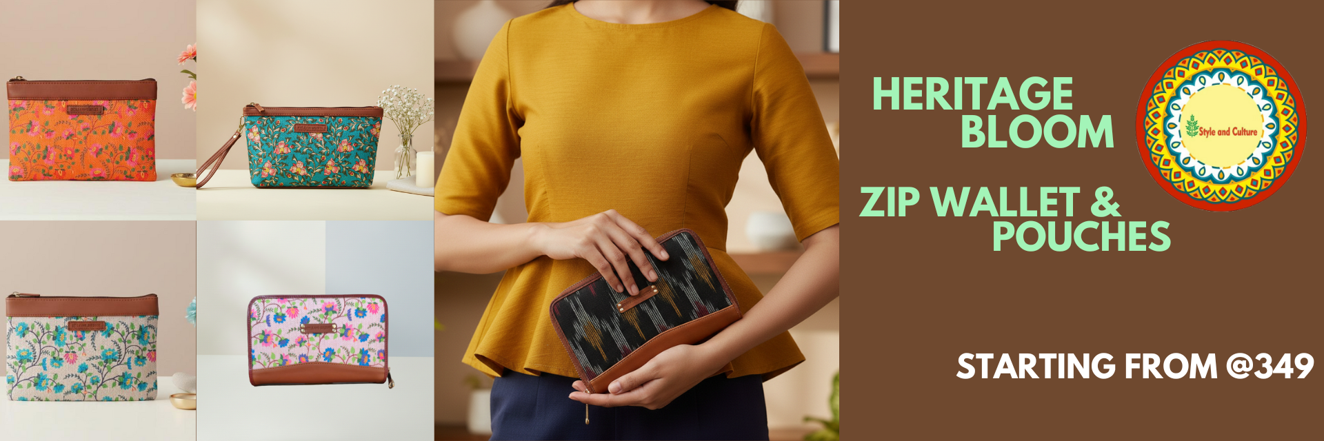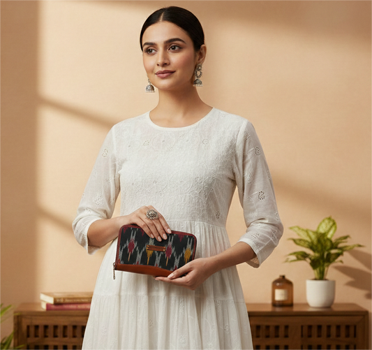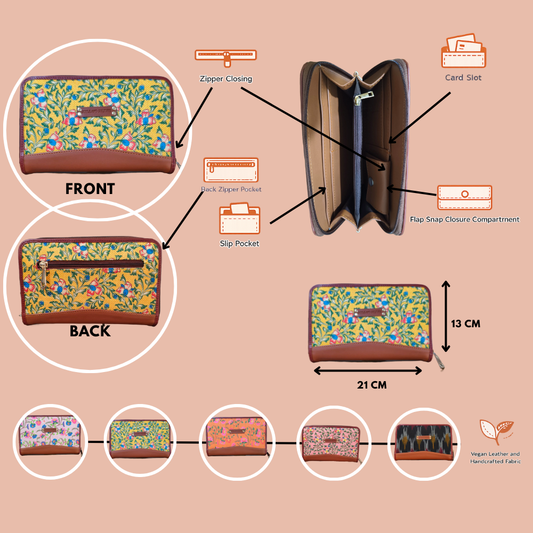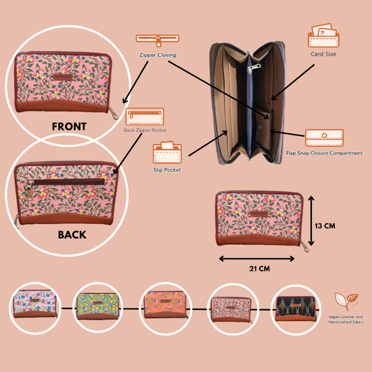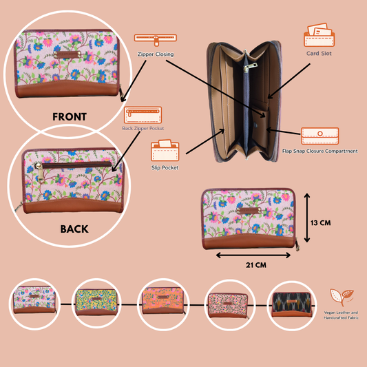 Handcrafted Heritage Ikkat Zip Wallet with Vegan Leather Trim