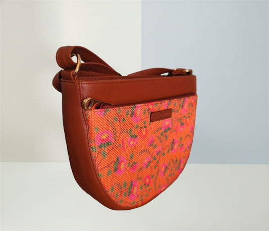 Style and Culture Handcrafted Orange Blossom Heritage Vegan Sling Bag