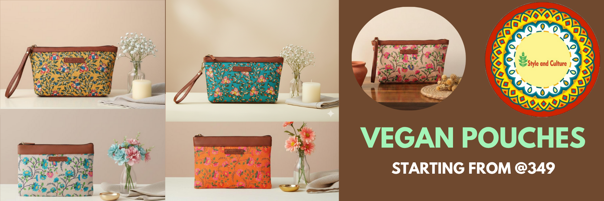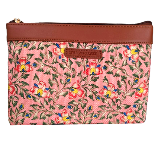 Style and Culture vegan floral motifs pouch perfect for daily essentials.