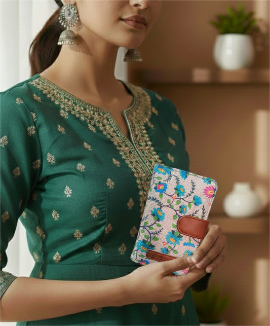 Handcrafted Floral Print Mini Card Wallet with Snap Closure