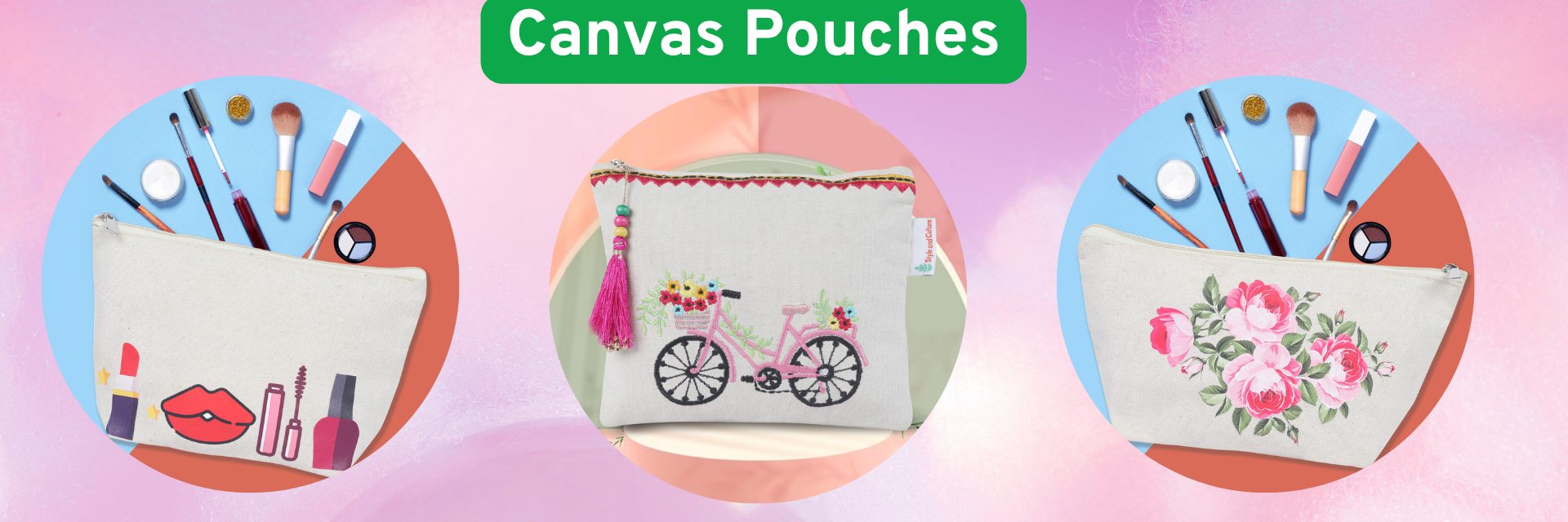 Style and Culture Cotton Zipper Pouch for Women/Handcrafted Pouch/Printed Design Pouch/Chic Canvas Cosmetic Pouch - Trendy and Vibrant Makeup Organizer with Stylish Prints (Design1)