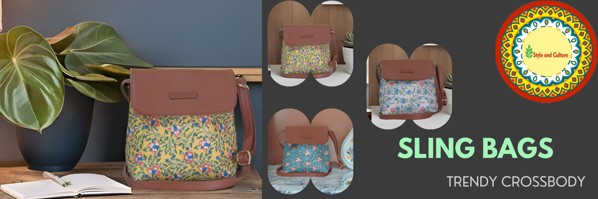 Style and Culture Handcrafted Floral design Vegan Sling Bag