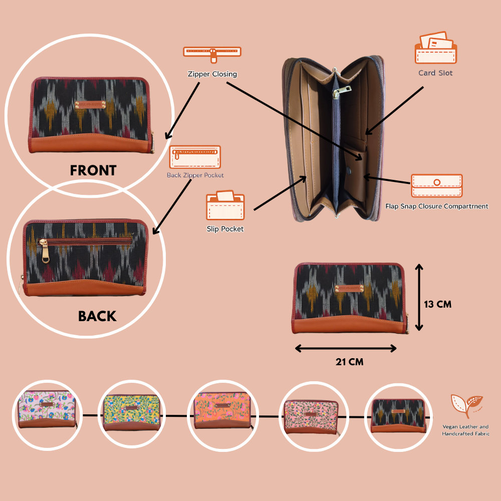 Handcrafted Heritage Ikkat Zip Wallet with Vegan Leather Trim