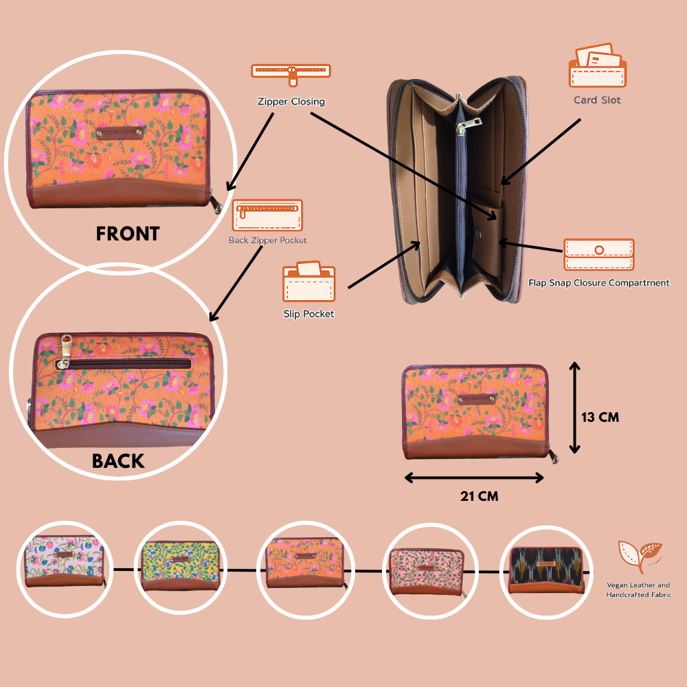 This handcrafted zip wallet from Style and Culture brings together heritage-inspired woven prints and contemporary functionality. Accented with smooth vegan leather detailing and a secure zip-around closure, it is designed to keep your essentials organized while adding a statement touch to your everyday carry. Compact yet spacious, it’s perfect for daily use, travel, or as a thoughtful gift.